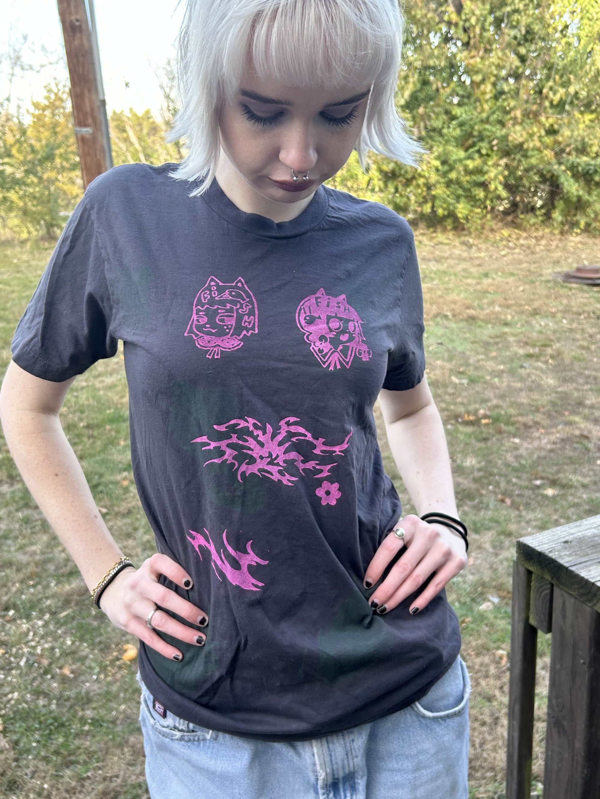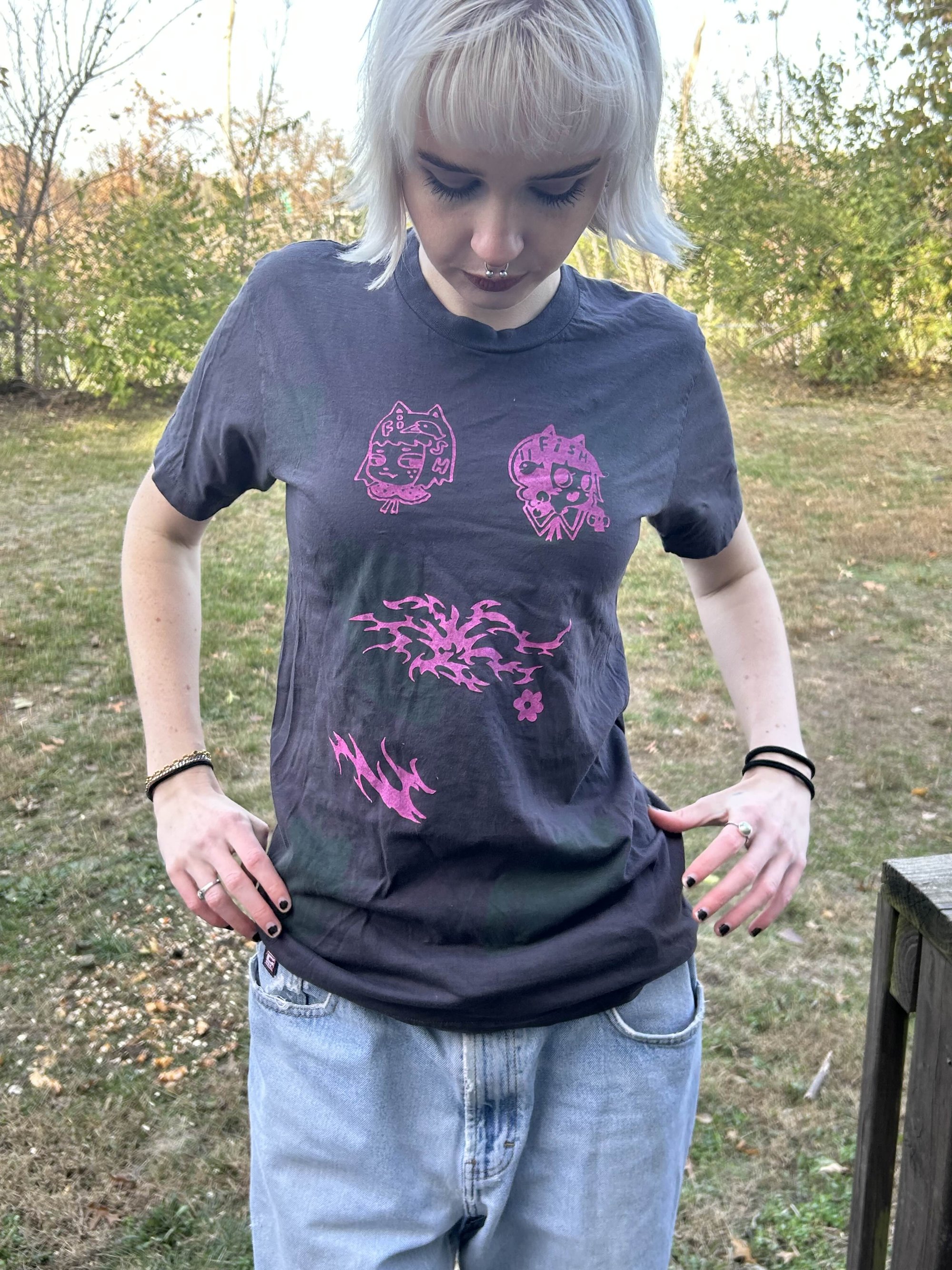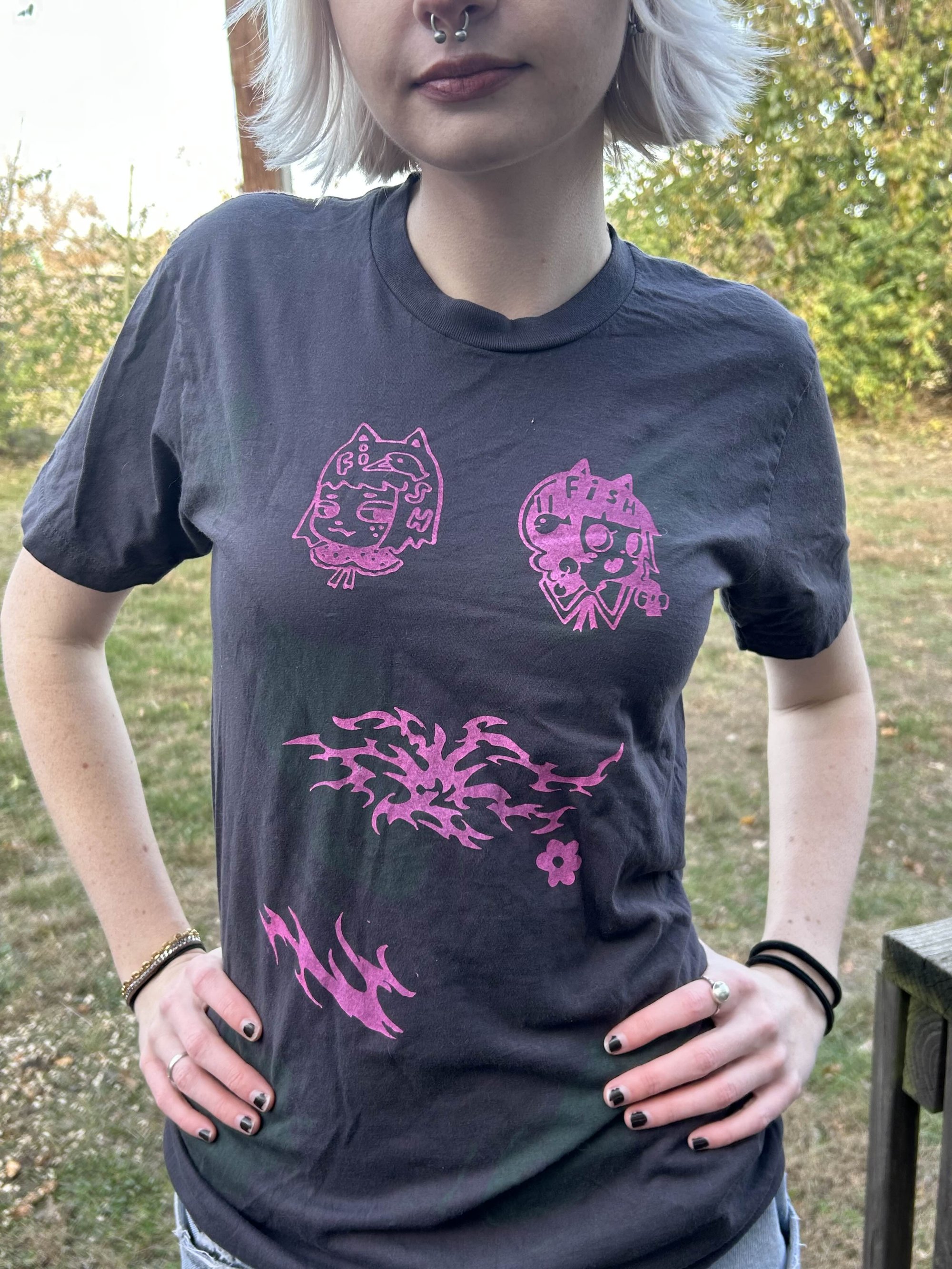 dark charcoal cats tee